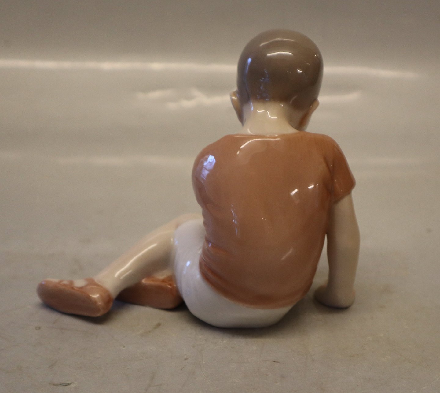 Description: Bing and Grondahl B&G 1671 Boy sitting looking down 12 cm IPI Art Nouveau brown shirt Marked with the three Royal Towers of Copenhagen. Bing & Groendahl In mint and nice condition