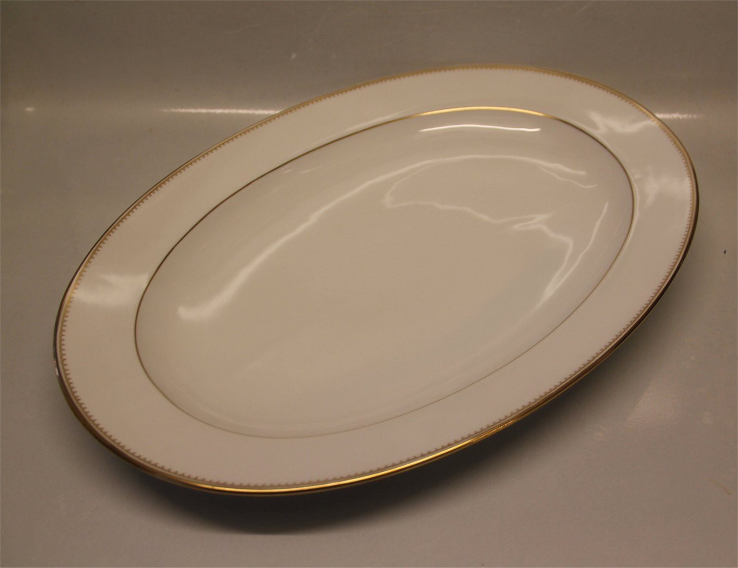 015 Stort ovalt stegefad 40 x 28 cm (315) B&G Menuet: Hvidt porcelæn, takket guldkant, hvid, form 601 Bing & Grøndahl