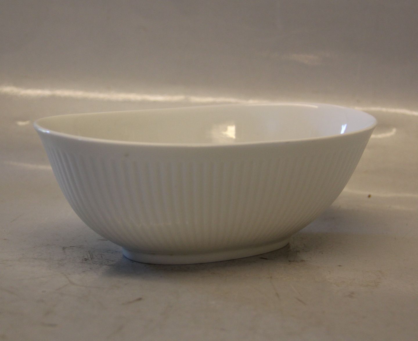 Description: 4232 RC White ribbed oval bowl 6.5 x 18 cm Blanc de Chine