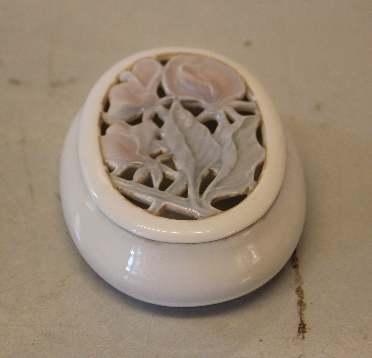 Description: 622 RC Art Nouveau box with lid 3 x 10 x 7.5 cm Pre 1923 painter 104 Royal Copenhagen Gennembrudt blomsterrelief - original firing cracks