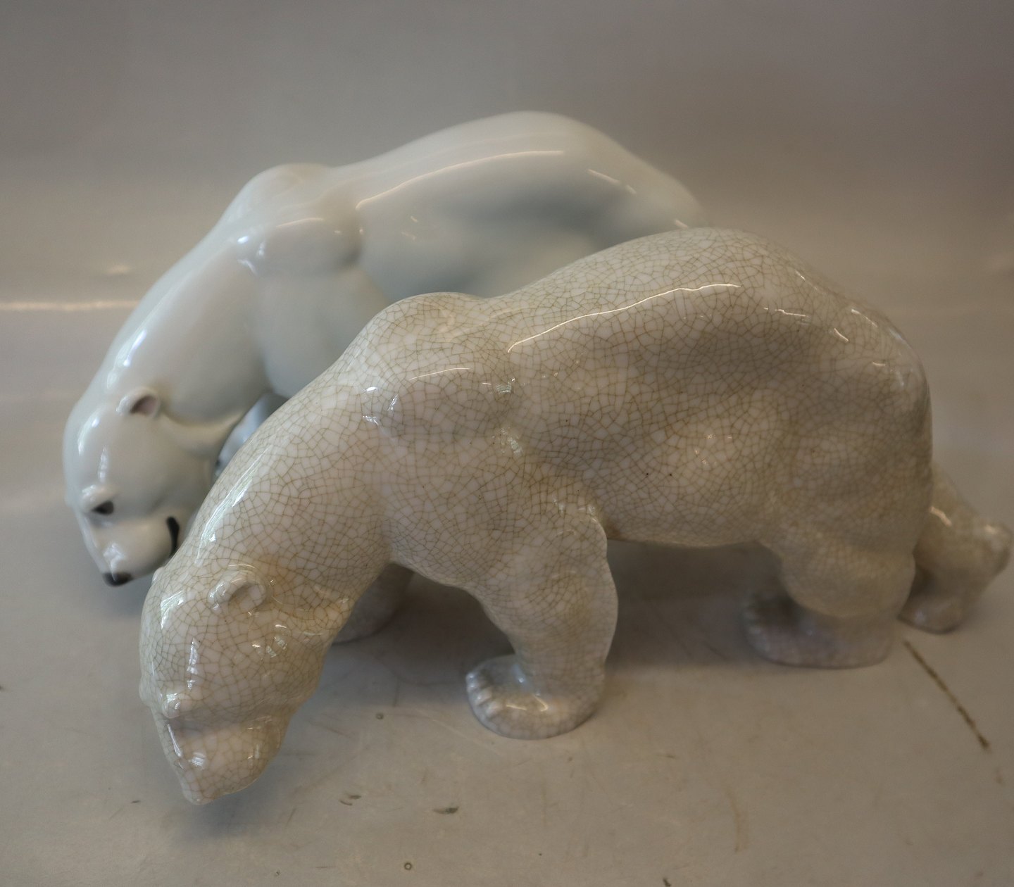 Description: Heubach Lichte Veb 19806 Polar Bear head down 15 x 28 cm Cracckled Glaze