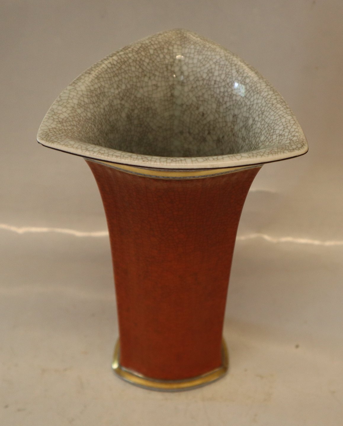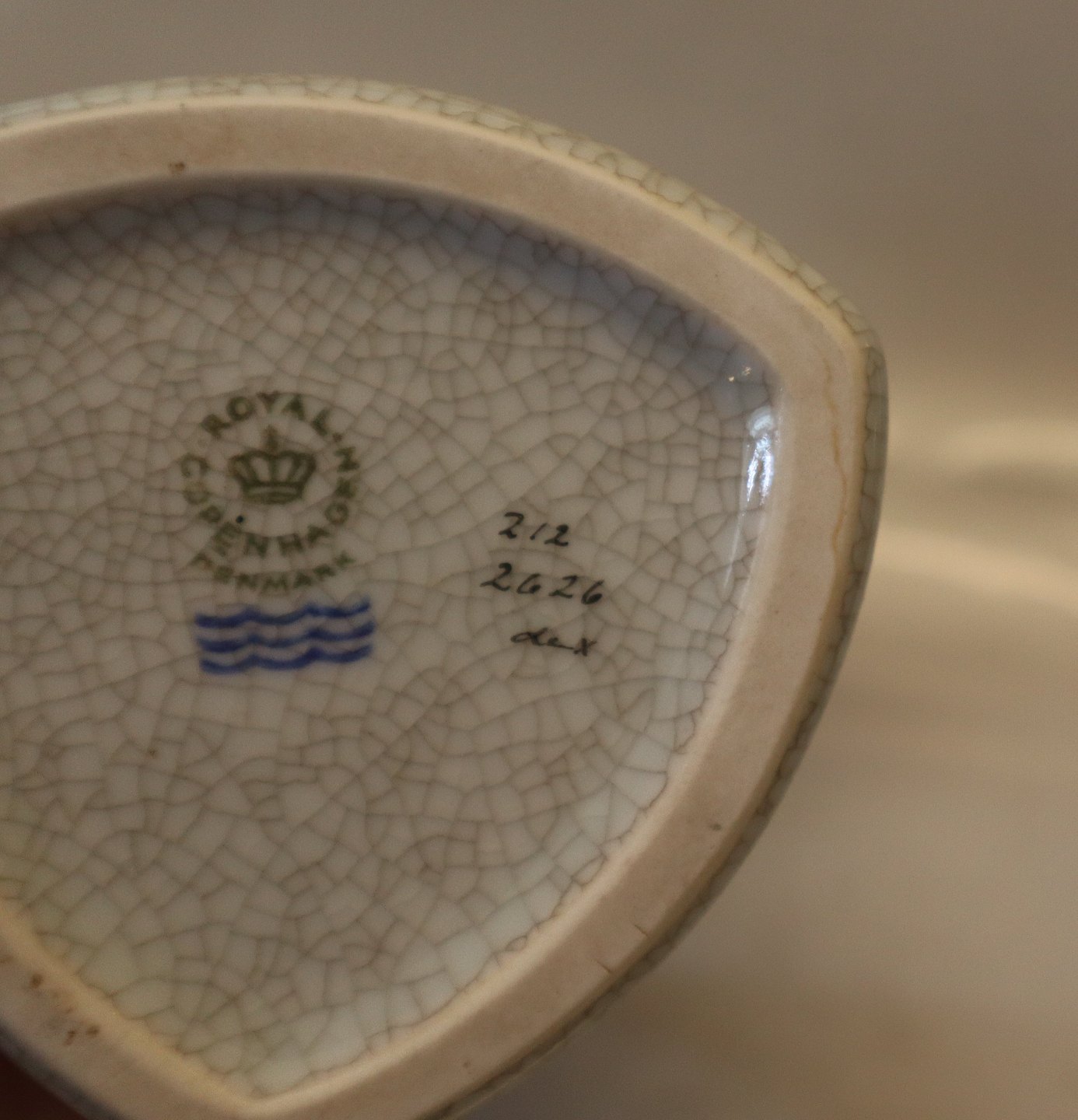 Description: 212-2626 RC Triangular orange on grey and gold 23 cm Royal Copenhagen Crackleware Craquelé, (Crackelure)