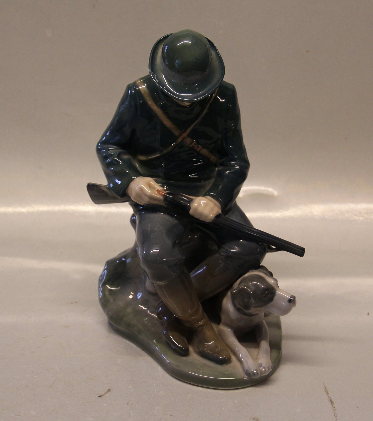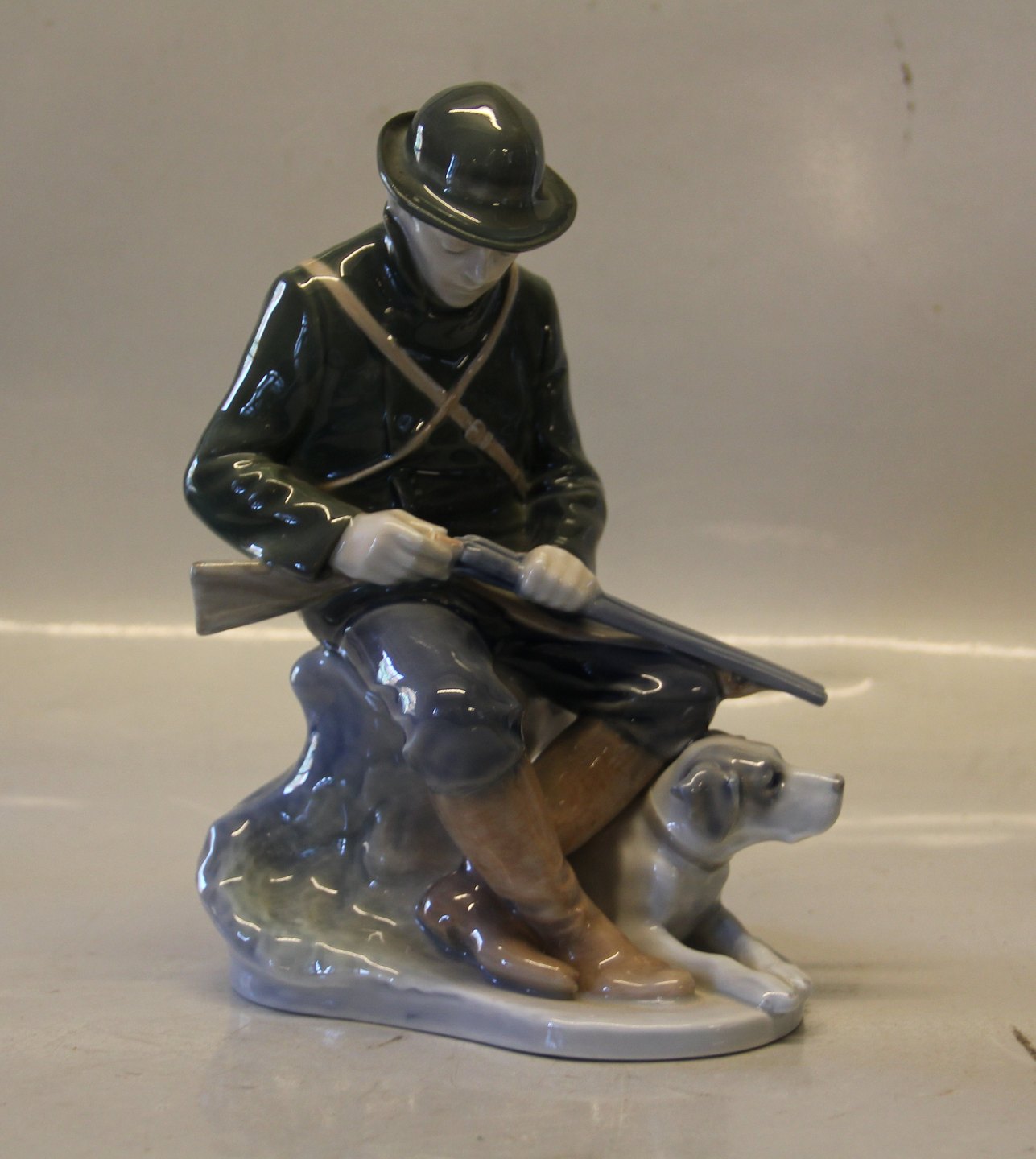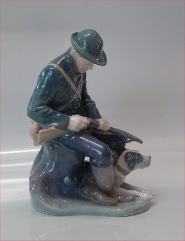 Kgl Porcelæn Jæger med hund 1087 Chr Th. 20 x 10 cm