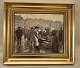 Beskrivelse: Bing & Grøndahl porcelænsmaleri i guldramme 36.5 x 42 cm Paul Fisher (1860-1934) Fiskerkonerne på Gammel Strand 1917 no 1419 af 1750 . I fin og hel stand. porcelænsbillede - porcelænsmaleri