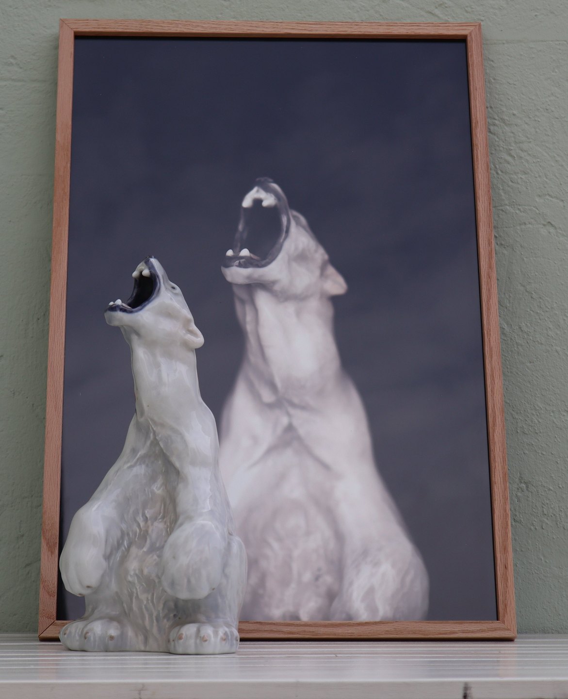 Fotograf og kunstner Lars Dyrendom (1981 Thisted) har arbejdet med Grønland og Danmarks koloniale relation. Fotoserien med porcelænsisbjørne sætter fokus på hvordan isbjørnen er blevet et symbol for tilhørsforholdene til Grønland. Fotoerne er til salg og kan ses i en udstilling i Mariager sammen med porcelænsfigurer og billeder af udstoppede dyr, som de vises på danske museer. Se Klosterkælderens facebook side eller send email for mere informationsmateriale