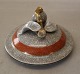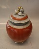 212-2781 RC Grey lidded vase with orange and gold 25 cm Royal Copenhagen Crackleware Craquelé, (Crackelure)