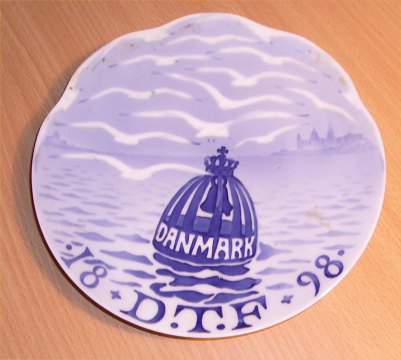 Turistforeningen. Svungen kant. Kronet klokkebøje betegnet DANMARK udfor Kronborg, derover måger. Indskrift: D.T.F. 1898 (Danmarks Turistforening). Design: Arnold Krog 800 ekspl. 18,5 cm