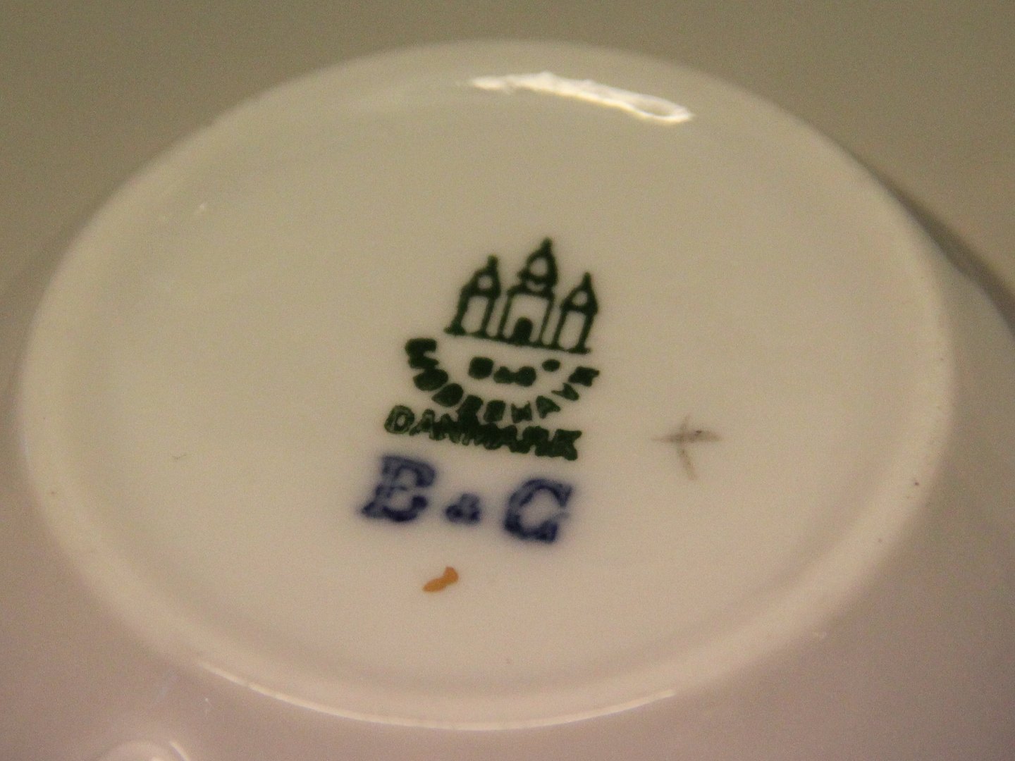B&G Mågestel med guldkant 104 Morgenkop 6.5 x 10.2 cm /2,25 dl og underkop 16.8 cm (476)