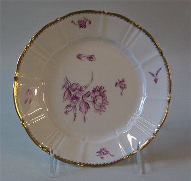 Hamlet B&G porcelæn : Hvidt porcelæn, purpur blomst, guldkant med takker, form 257