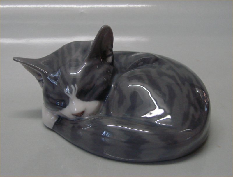 Beskrivelse: Kgl. figur fra Royal Copenhagen 0422 RC Kat gråstribet Erik Nielsen 8 x 13 cm I hel og fin stand Kitty Cat
