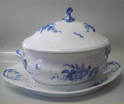 Beskrivelse: Kongelig Dansk Porcelæn Blå Blomst Svejfet 1672-10 Terrinfad, ovalt 42 cm 1. sort