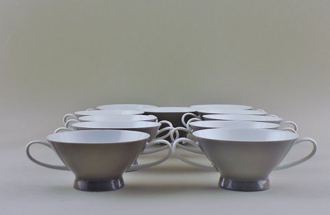 Rosenthal bouillon-kopper,11 stk. Smukt moderne stel i mørkegråt. I god stand. Størrelse: 6½ cm. høj. 17½ cm. i diameter.