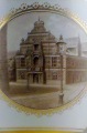 Sensationel B&G (Bing & Grondahl) large egg shaped vase in empire style on stand. Lid with mythological figures in biscuit. Decorated with the Stock Exchange and the French Embassy in Copenhagen.