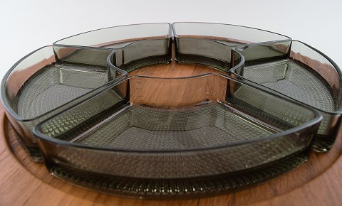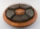 Flemming Digsmed, rundt cabaretfad på drejefod af teak med indsatse af farvet glas.