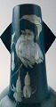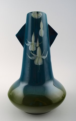 Jerome Massier, Vallauris, fransk vase i keramik, håndmalet med fugl og blomster.