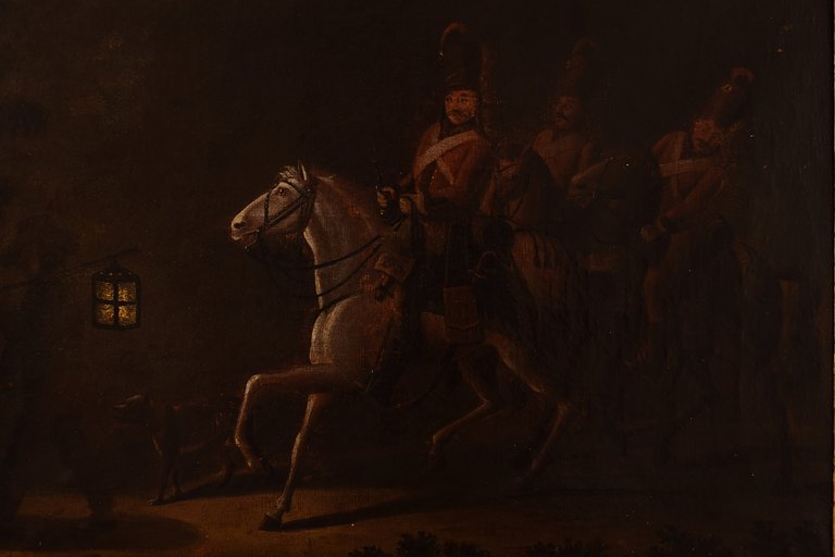 Ubekendt Old master. Olie på lærred, 1800-tallet. Ryttere fra Napoleon 1. armé. Usigneret. Måler : 50 x 41 ( 58 x 49 ) cm. I god stand.