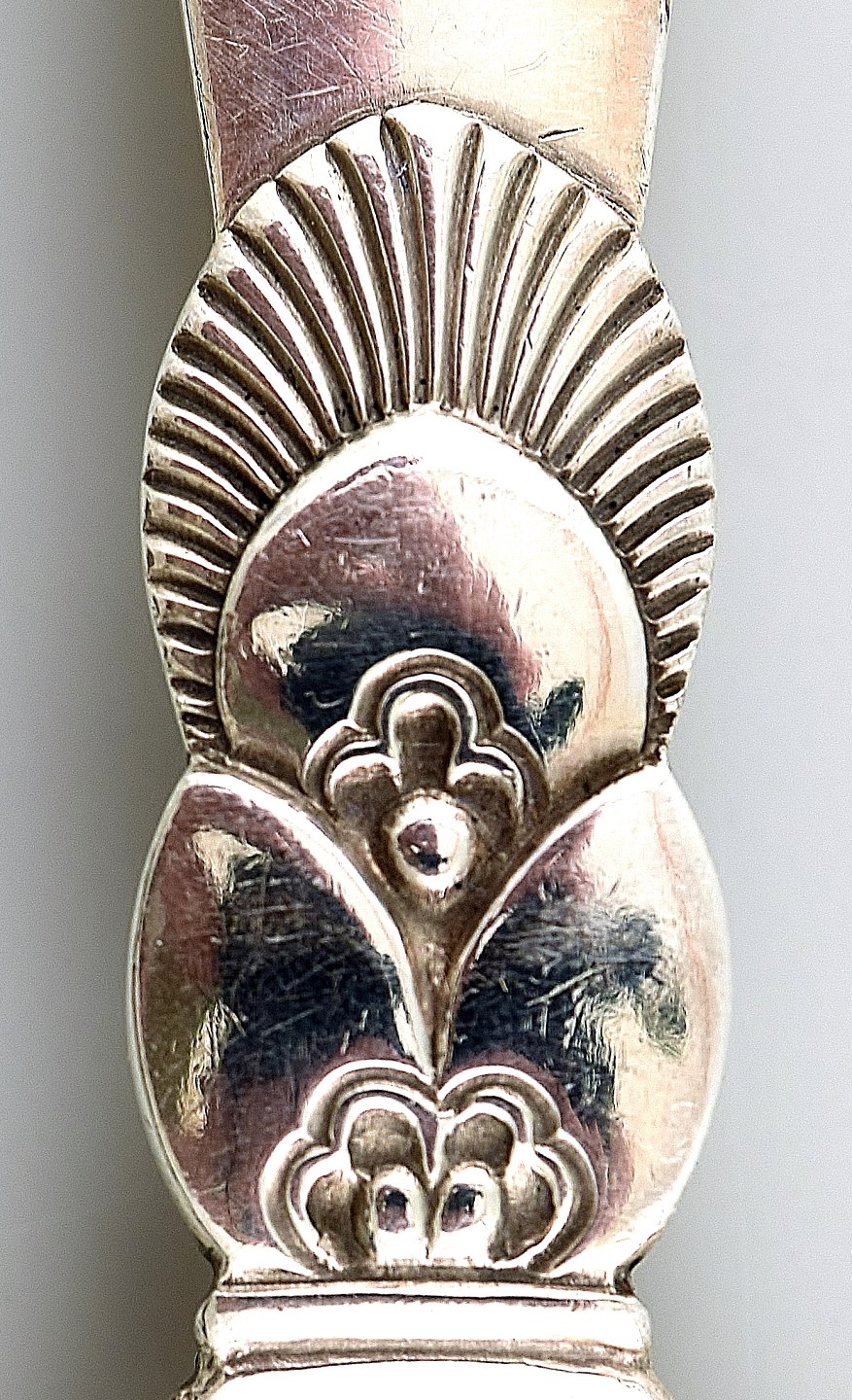 Georg Jensen Sterlingsølv 'Kaktus' bestik. Dessertske/barneske . Måler 15 cm. I perfekt stand. Stemplet. Designet af Gundorph Albertus i 1930.