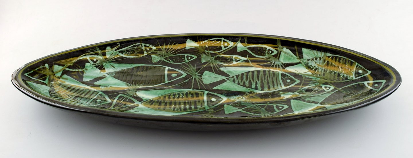 Astrid Tjalk for Kähler: Aflangt kæmpestort unika fad af lertøj.