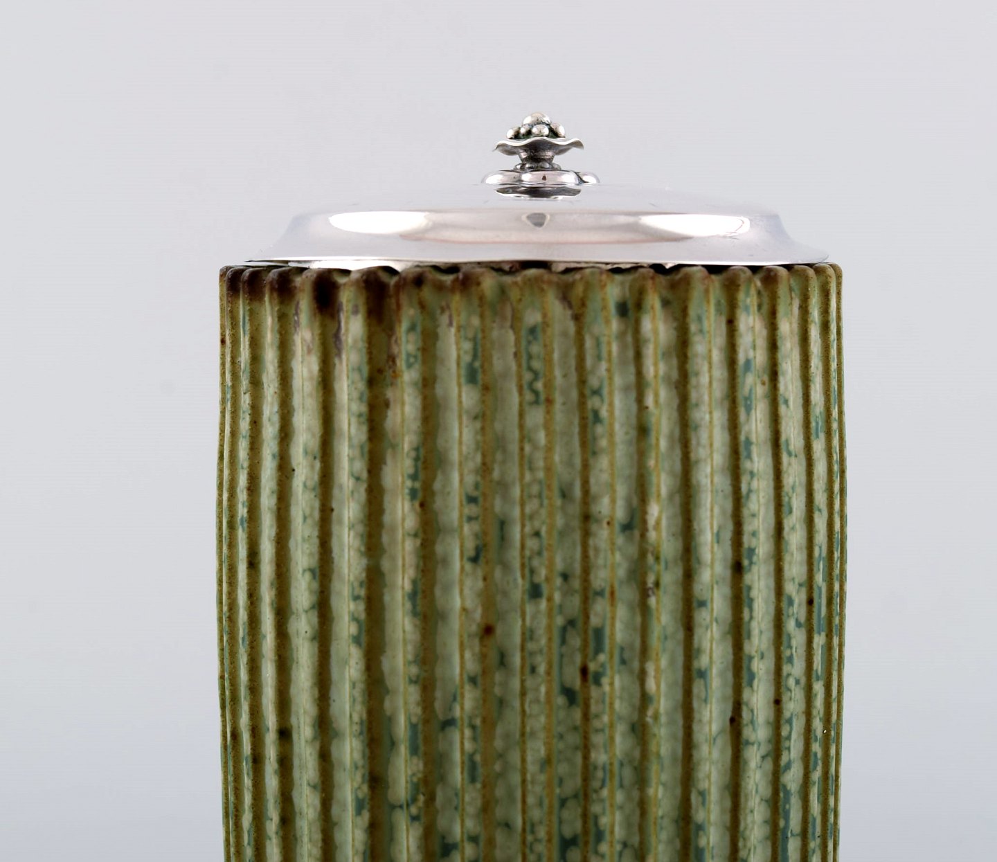 Arne Bang, Georg Jensen og Rey Urban, keramik marmeladekrukke med tilhørende sterling sølvlåg af Georg Jensen og Rey Urban sølvske.