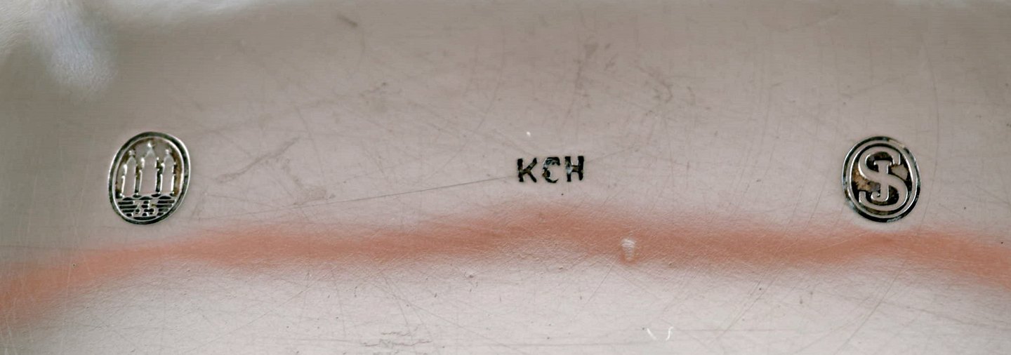 Jens Sigsgaard, stor skål i tretårnet sølv. 1940´erne. I perfekt stand. Stemplet. Måler : 23,5 cm. x 10 cm. Vægt : 383 g.