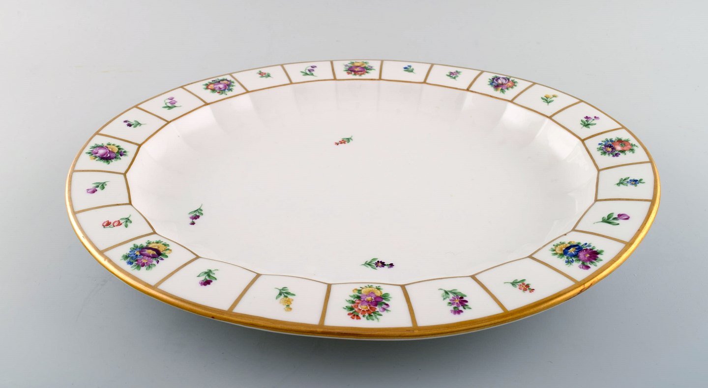 Henriette, Kongelig porcelæn. Royal Copenhagen Henriette, håndmalet porcelæn med guldkant. Kgl. Henriette, ovalt serveringsfad, nr. 444/8541.