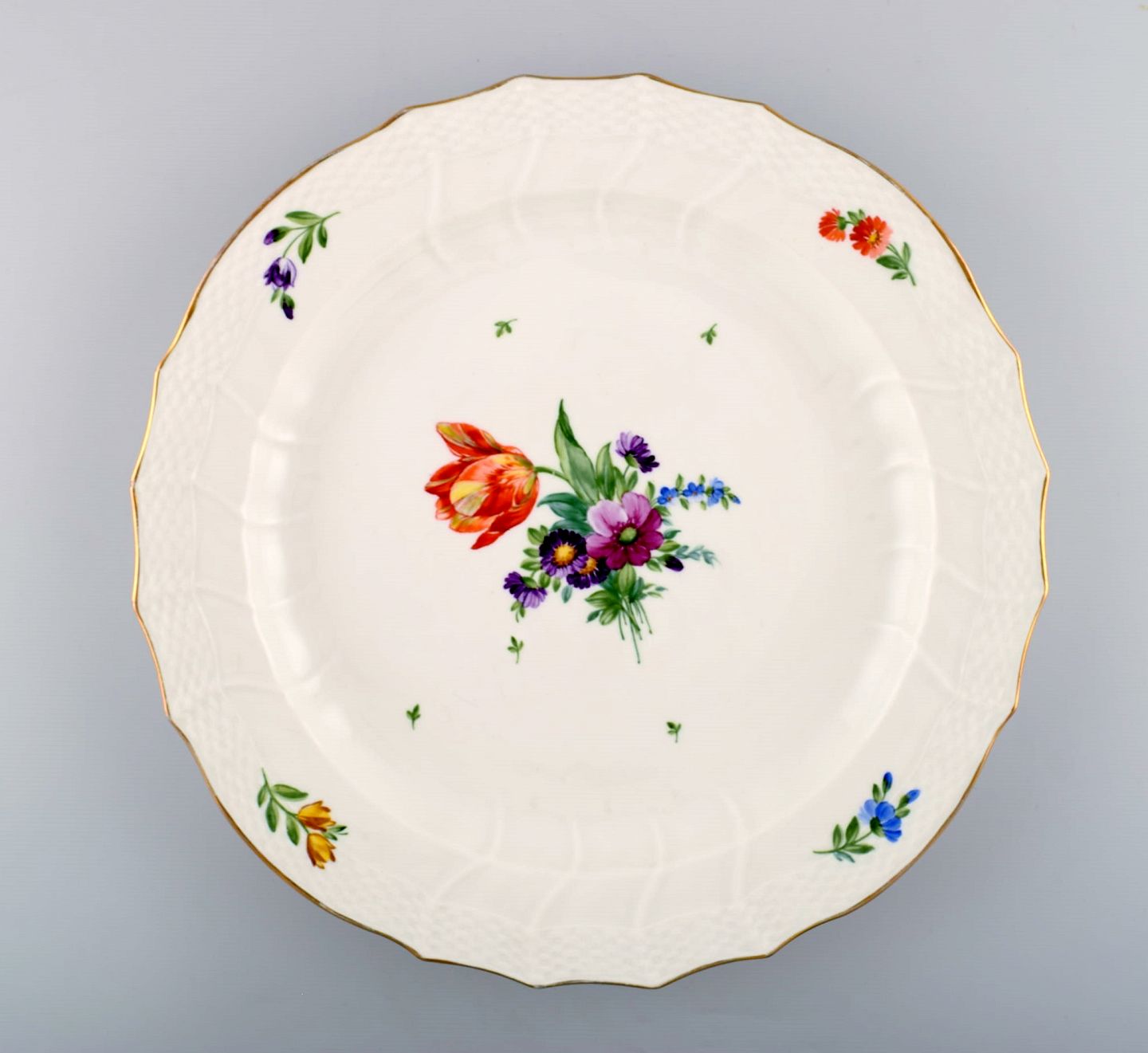 Royal Copenhagen Let Saksisk Blomst, rundt fad. Dekorationsnummer 493/1564. 2. sortering. Måler 36 cm. Perfekt stand.