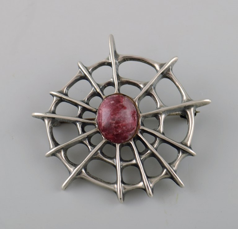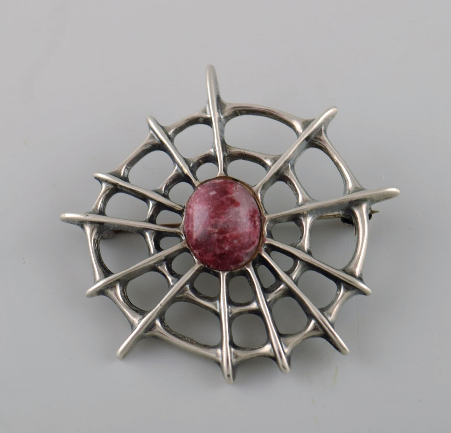 'Edderkoppespind' broche af Ben David-Andersen, Norge, sølv med Thulite, 1964. 'Trolde-serien'.