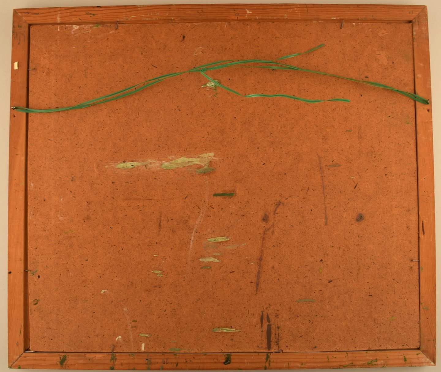 Lærredet måler: 58 cm x 50 cm. Rammen måler: 3 cm.