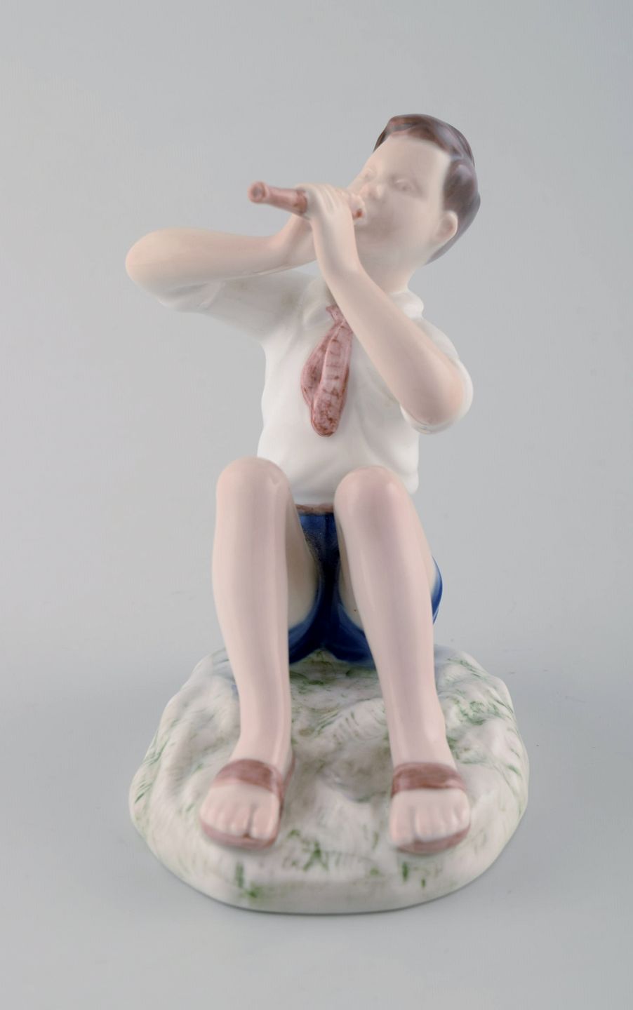 B & G / Bing & Grondahl - boy playing on flute - number 2344. 1st. factory quality. Measures: 13,5 cm x 11 cm Stamped. In perfect condition.