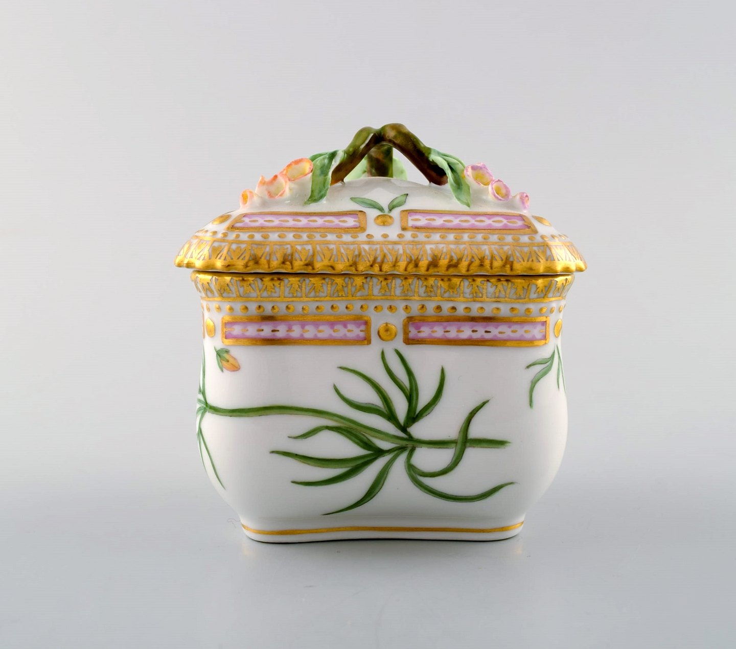 Royal Copenhagen Flora Danica tresidet cremekop. Dessin nr. 20/3575 med grenformet hank og pousserede blomster.