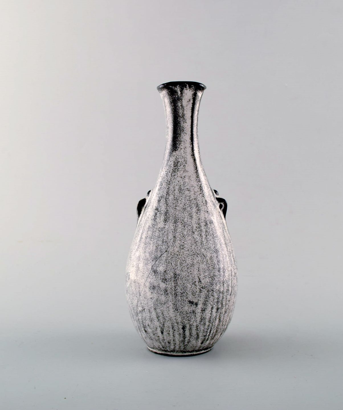 Kähler, HAK, glaseret stentøjsvase, 1930'erne. Designet af Svend Hammershøi. Smuk gråsort dobbeltglasur. Måler : 19,5 x 9 cm. Stemplet. I flot stand.