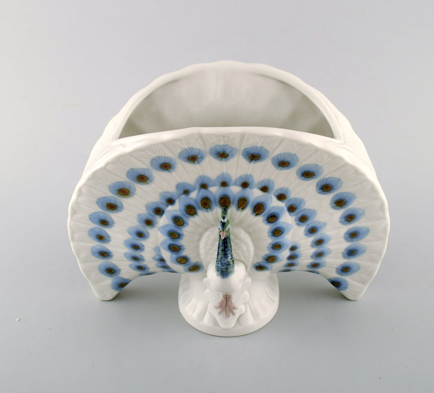 Lladro, Spanien. Stor vase med påfugle i glaseret porcelæn. 1900-tallet. Måler: 35 x 18 cm. I flot stand. Stemplet.