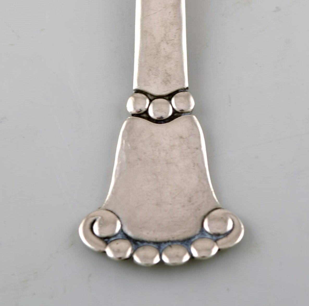 Dansk sølvsmed. "Kugle" kagegaffel i hammerslået sølv. Dateret 1934. I flot stand. Måler: 15 cm. Stemplet.