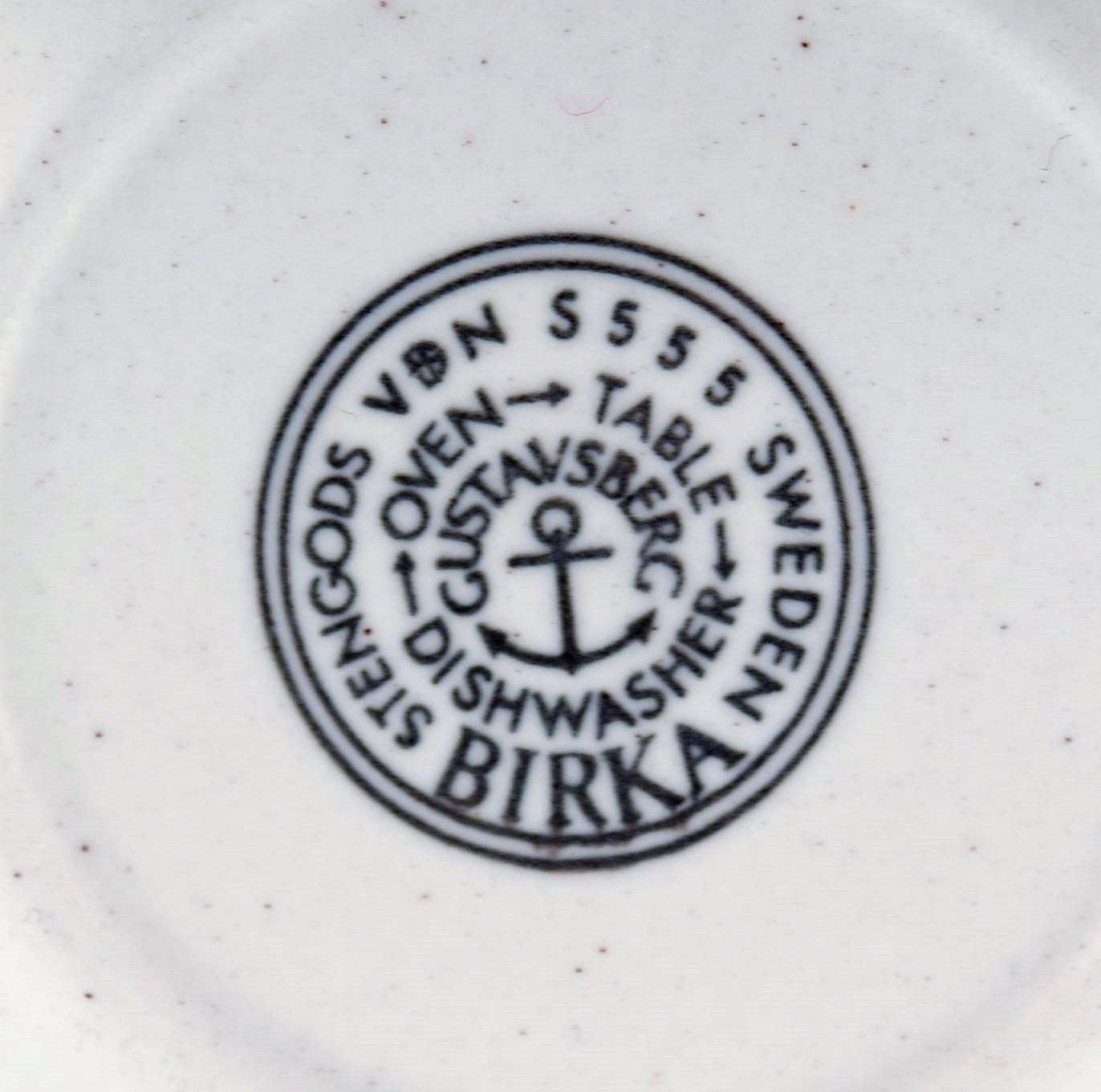 Stig Lindberg for Gustavsberg. Sæt på tolv "Birka" tekopper med underkop i glaseret stentøj. 1960'erne. I flot stand. Koppen måler: 10 x 7 cm. Underkoppen måler: 15 cm. Stemplet.