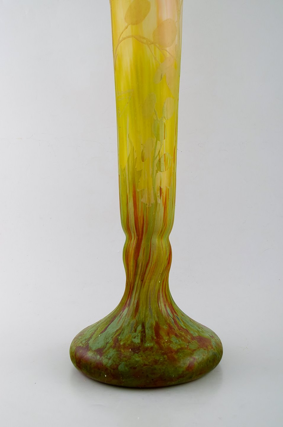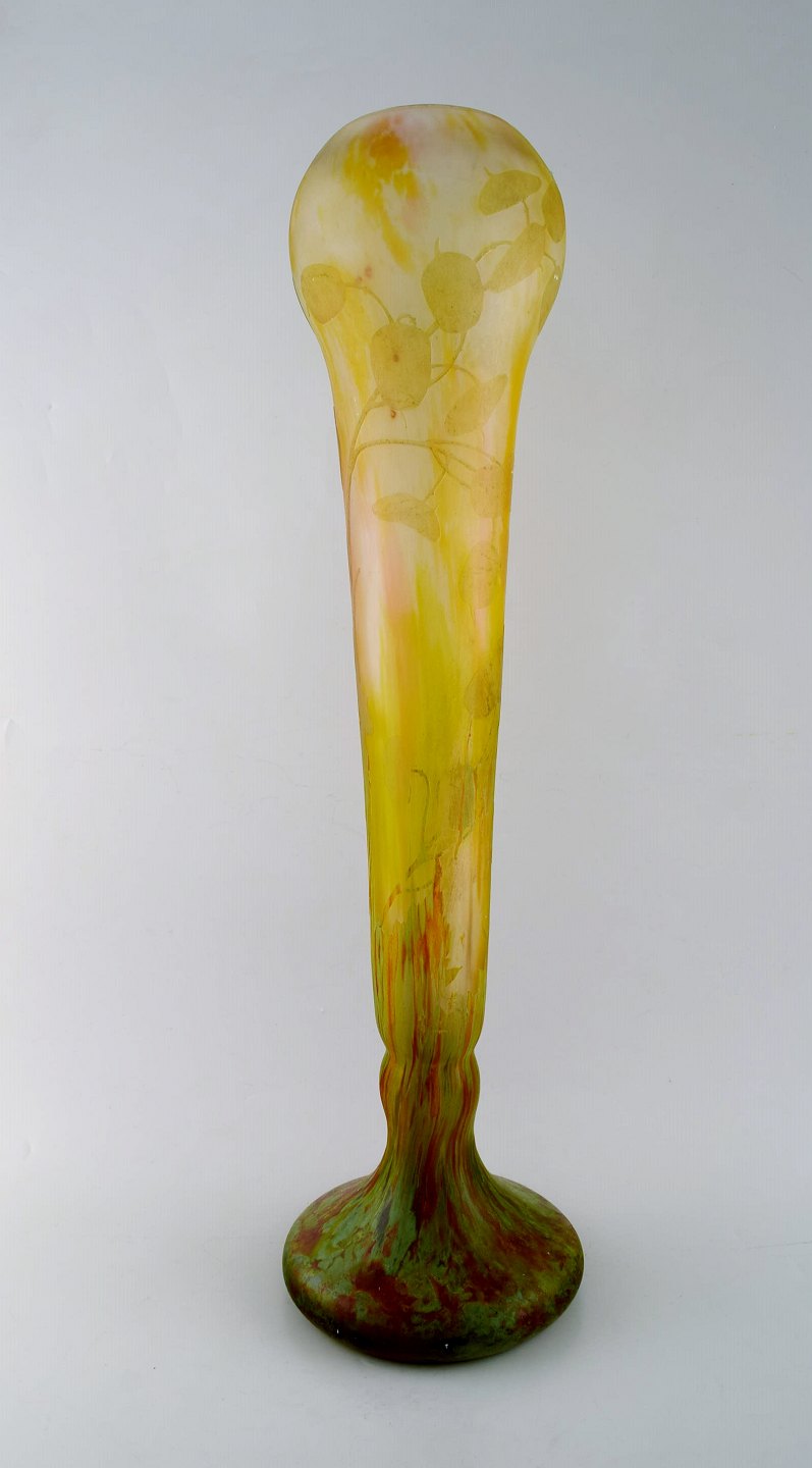Daum Nancy, France. Colossal art deco floor vase in frosted mouth blown art glass carved with motifs in the form of flowers and leaves. 1920/30's.