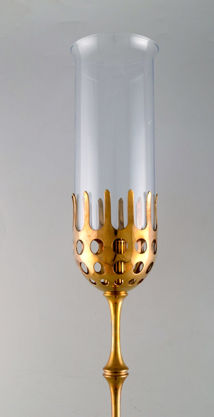 Bjørn Wiinblad (1918-2006). Meget høj "Hurricane" stage af messing med blåtonet glas. 1970'erne.
