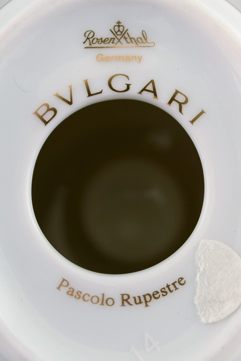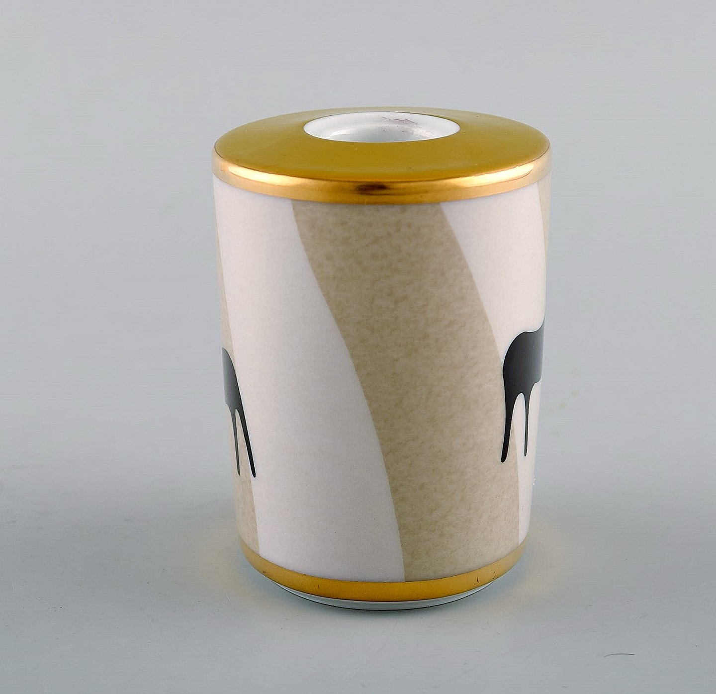 Bvlgari / Bulgari for Rosenthal. "Pascolo Rupestre" lysestage i porcelæn. Dyremotiver og gulddekoration. Sent 1900-tallet. I perfekt stand. Måler: 8 x 7 cm. Stemplet. Original kasse medfølger.