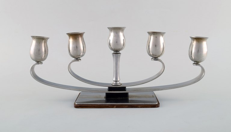 Cohr, Danmark. Femarmet lysetage i rustfrit stål. Midt 1900-tallet. I flot stand. Måler: 31 x 13 cm. Stemplet.