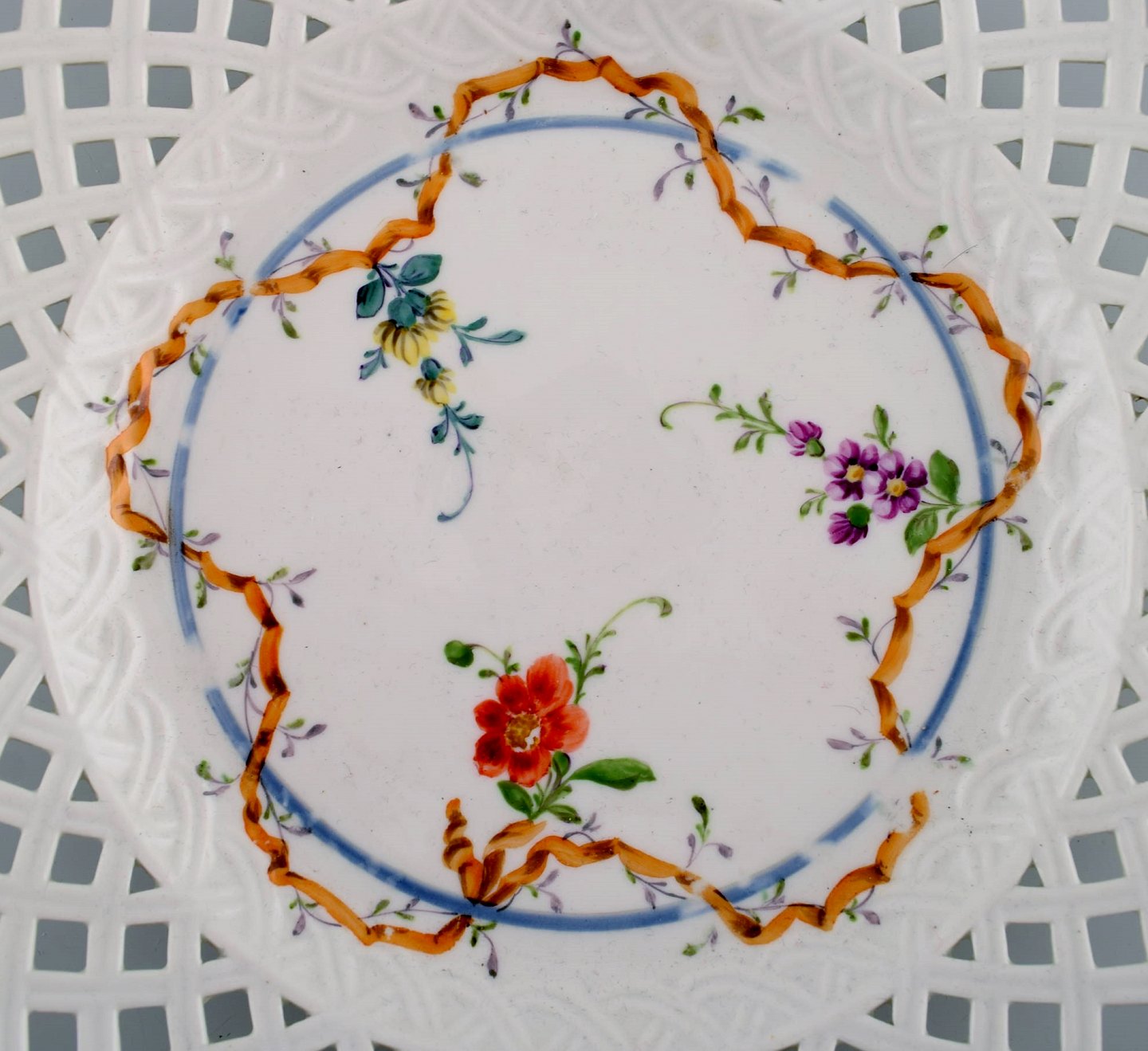 To antikke Meissen tallerkener i gennembrudt porcelæn med håndmalede blomster motiver. Museumskvalitet. Dateret 1773-1814. Måler: 23 cm. I flot stand. Stemplet: Marcolini.