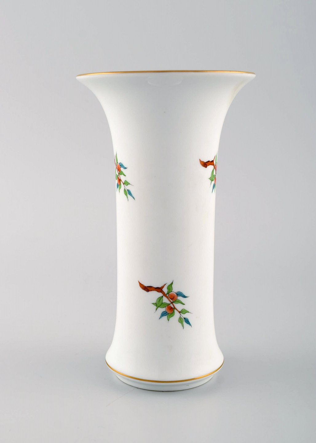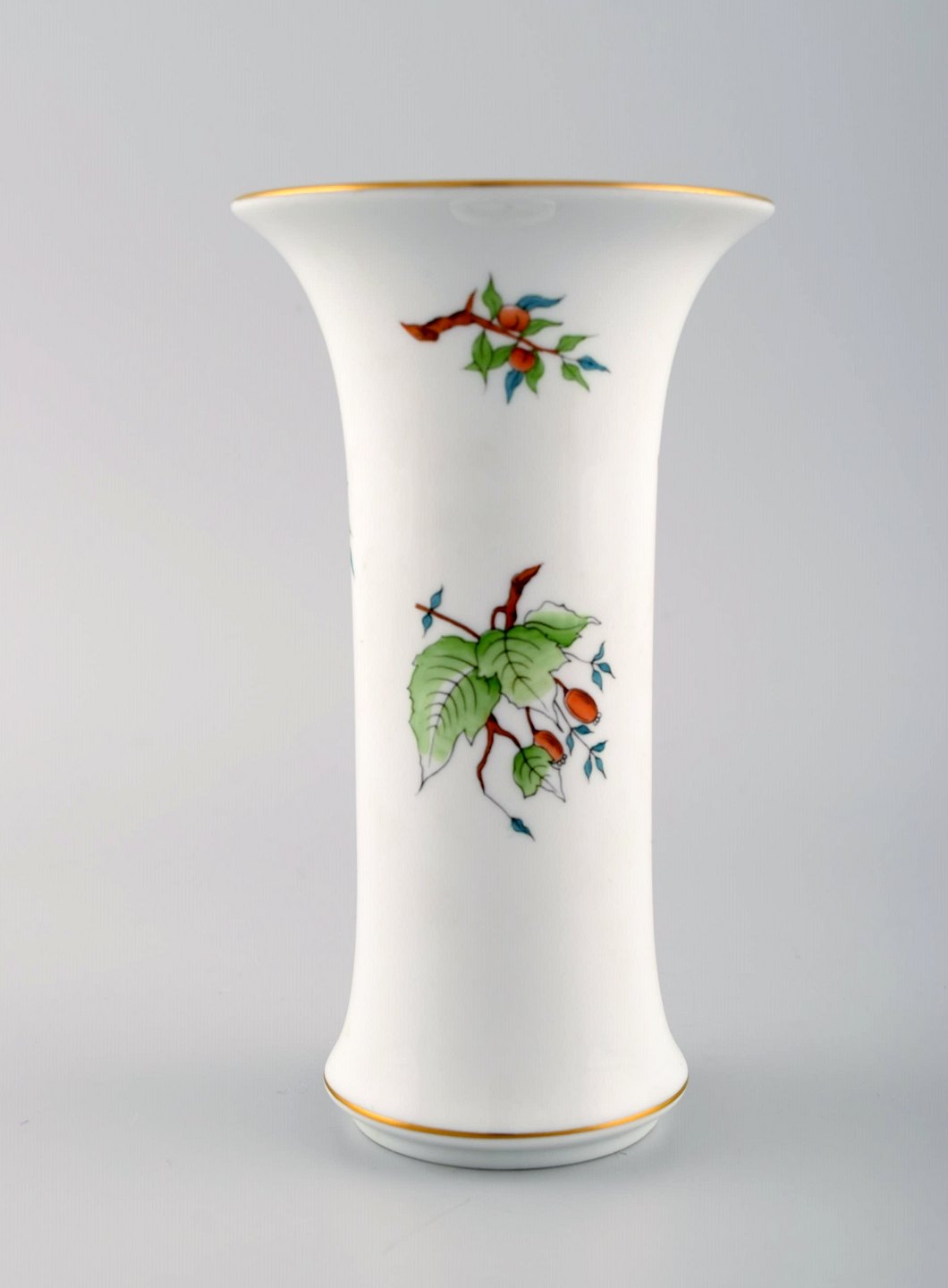Three Herend vases in hand-painted porcelain with flowers and gold decoration. Mid-20th century. Largest measures: 16.5 x 9.5 cm. In very good condition. Stamped.