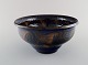 Kähler, HAK. Skål i glaseret stentøj. Orange bladværk på blå baggrund. 1930/40'erne. Måler: 26,5 x 13 cm. Signeret. I flot stand.