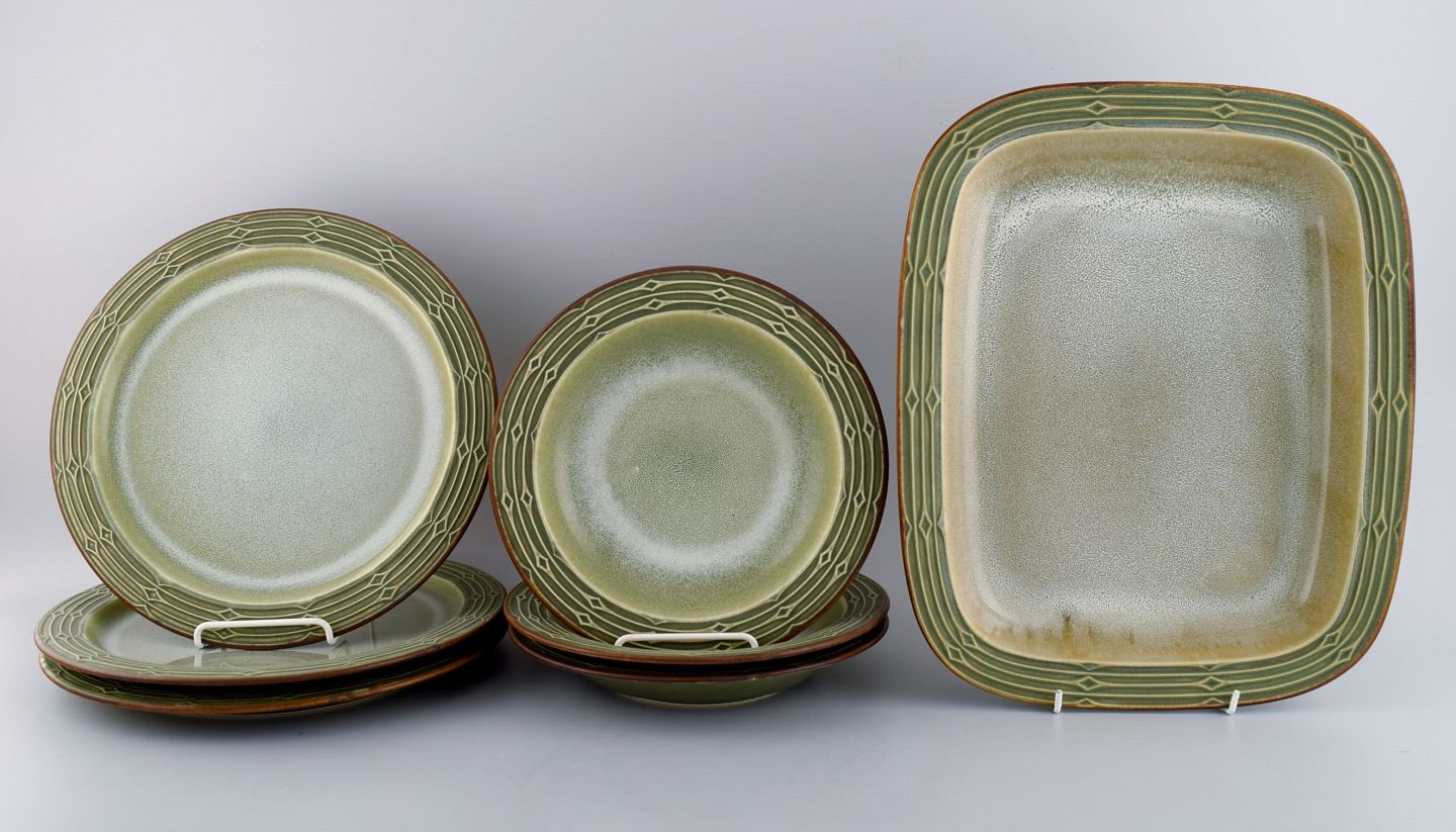 Jens H. Quistgaard (1919-2008) for Bing & Grøndahl. Syv dele Rune middagsservice i glaseret stentøj. 1960/70'erne.