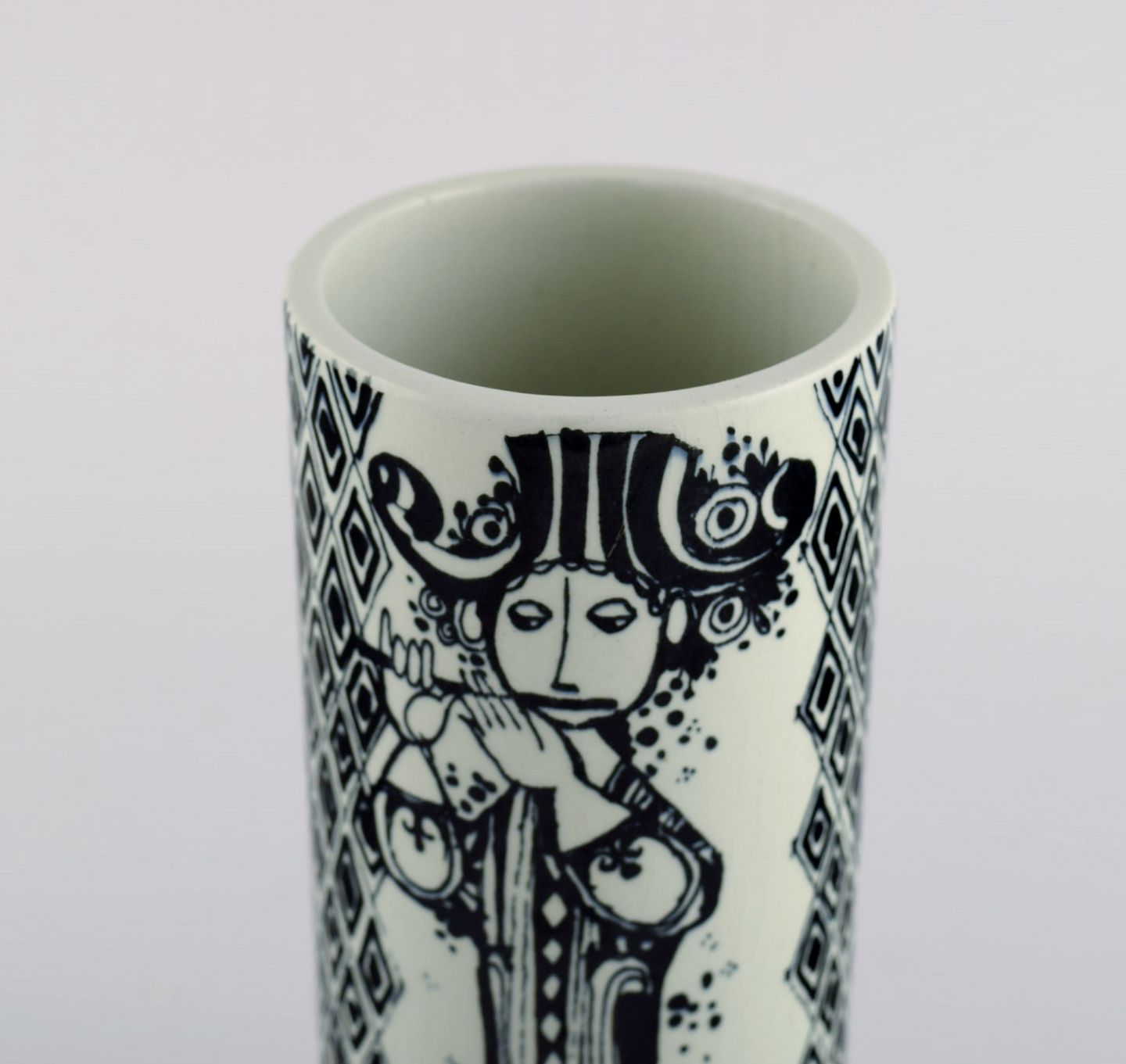 Bjørn Wiinblad for Nymølle. Vase i glaseret fajance. 1970/80'erne. Måler: 18 x 7,2 cm. I flot stand. Stemplet.