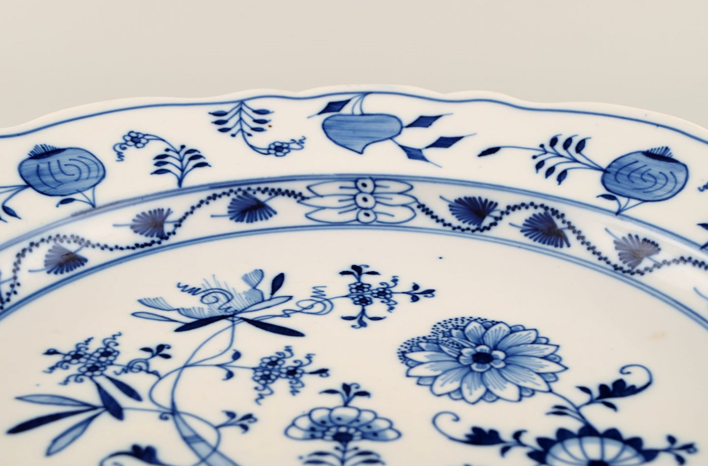 Stadt Meissen løgmønstret. Stor skål. Midt 1900-tallet. Måler: 34,5 x 5,8 cm. I flot stand. Hårrevne. Stemplet.