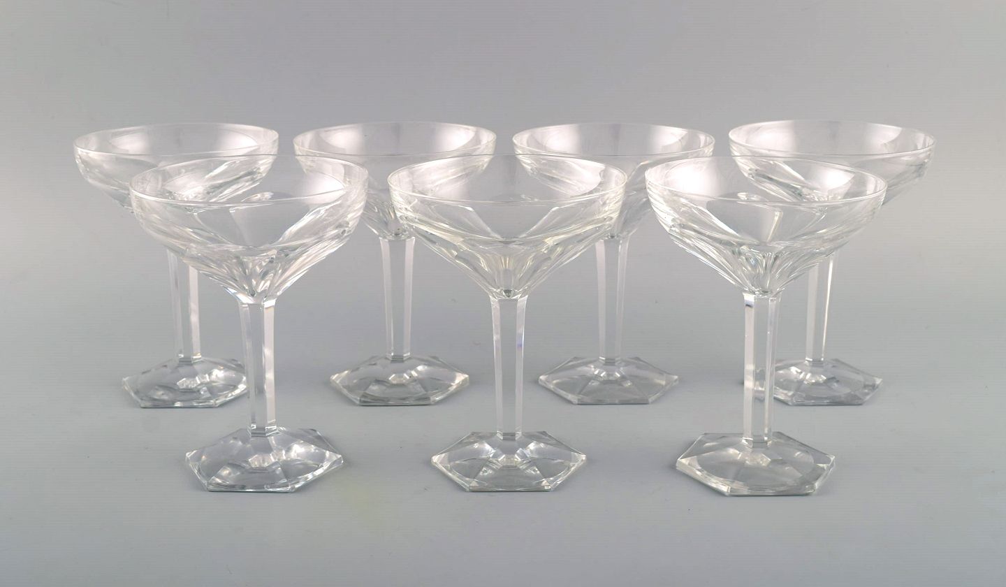 Val St. Lambert, Belgien. Syv Legagneux champagneskåle i klart mundblæst krystalglas. Midt 1900-tallet. Måler: 14 x 10,8 cm I perfekt stand.