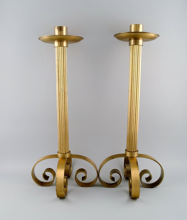 Ivar Ålenius Björk for Ystad metall. To kolossale gulvlysestager i messing. Sjælden model, 1960'erne.