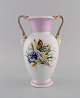 Antique Bing & Grøndahl porcelain vase with hand-painted butterflies and flowers. Handles modeled as snakes from Medusa's hair. 1870s.
