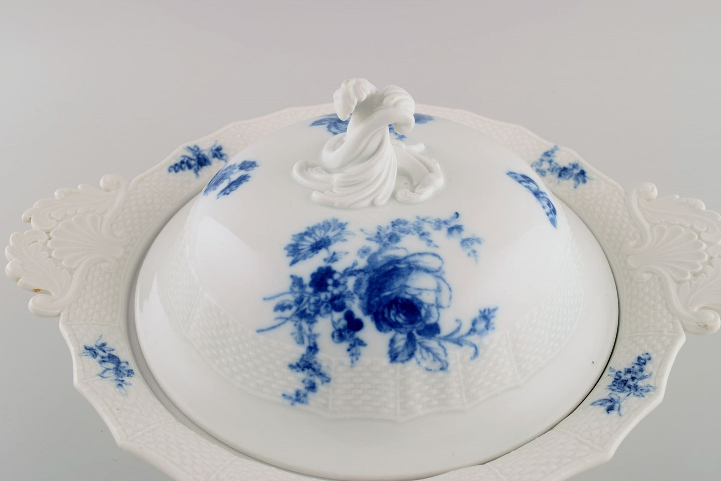 Antique Meissen lidded tureen with handles in hand-painted porcelain. Blue flowers and butterflies. Late 19th century. Measures: 33.5 x 18 cm. In excellent condition. Stamped. 3rd factory quality.