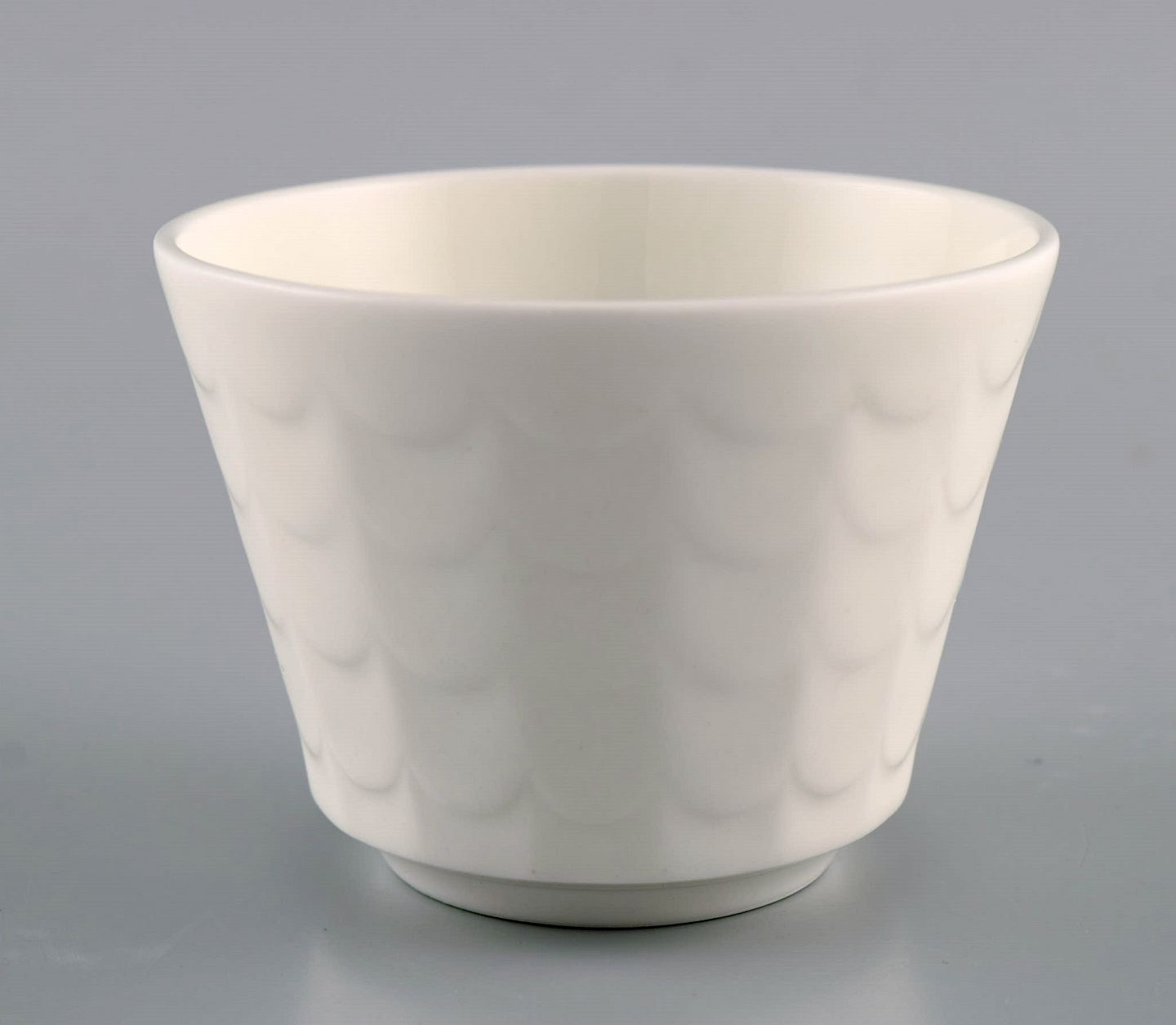 Wilhelm Kåge for Gustavsberg. Otte urtepotter i hvidglaseret porcelæn. Svensk design, 1960'erne. Måler: 8 x 6 cm. I flot stand. Stemplet.