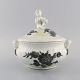 Early Royal Copenhagen Blue Flower Curved lidded tureen in porcelain with hand-painted flowers. Lid modeled with fruit-eating putti. Approx. 1820